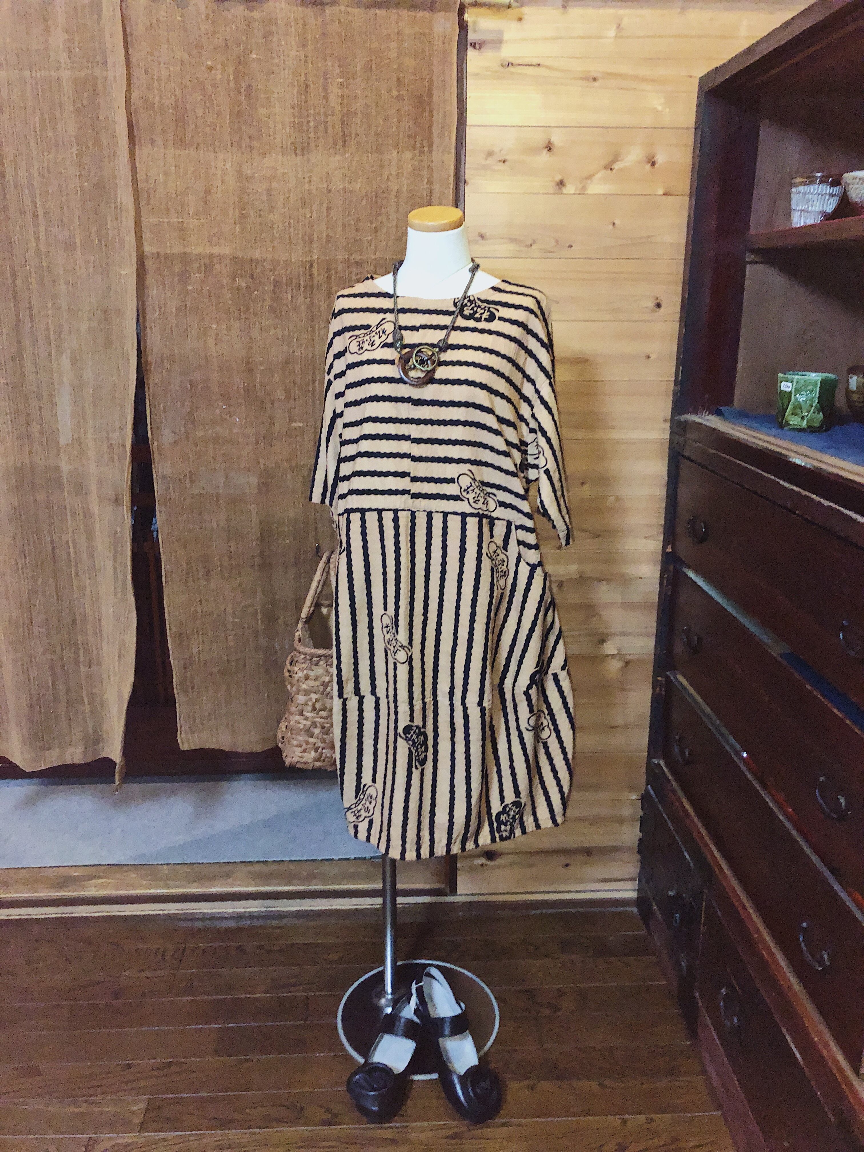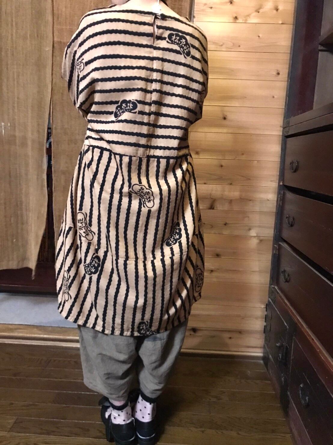 柿渋染め 浴衣ワンピース 裾バルーン 001A